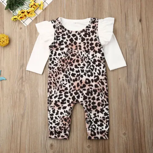 Fly Sleeve Tshirt Leopard Romper Set Toddler Clothes Tracksuit Casual Autumn Cotton 2PCS Baby Girls